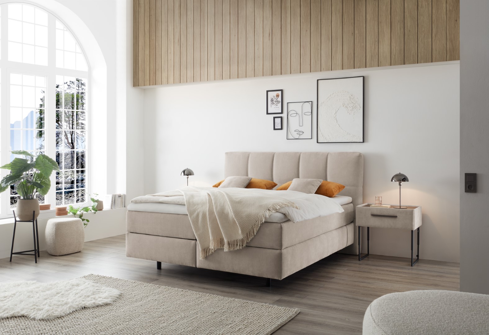 Un'esperienza di sonno lussuosa vi attende con il letto a molle insacchettate Atelier in un elegante beige. La sospensione ergonomica a 7 zone garantisce un comfort ottimale e sostiene il corpo in ogni posizione di riposo. Il tessuto di alta qualità non solo conferisce al letto un aspetto elegante, ma anche una sensazione piacevole che invita al relax. Immergetevi in una nuova dimensione del sonno e godetevi notti riposanti che vi danno la carica per affrontare il nuovo giorno. Perfetto per tutti coloro che desiderano combinare design e funzionalità nella propria camera da letto.