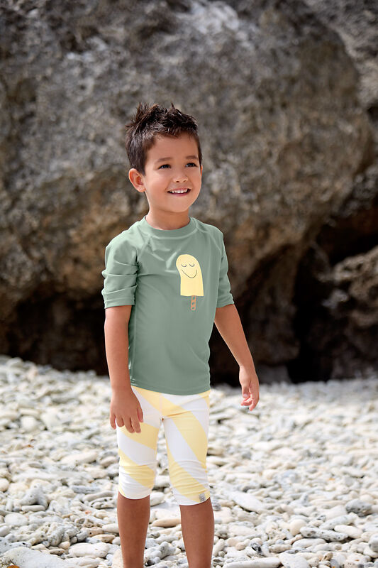 La tonalità verde brillante della maglietta da bagno Popsicle porta un'atmosfera estiva allegra nel guardaroba dei piccoli. Sviluppata appositamente per i bambini, questa maglietta da bagno non offre solo un aspetto stiloso, ma anche una protezione funzionale. Con la sua eccezionale caratteristica di materiale con protezione UV, assicura che la pelle delicata dei bambini sia perfettamente protetta anche nelle giornate soleggiate. Ideale per lunghe giornate in spiaggia o in piscina, combina comfort e sicurezza. La maglietta da bagno è la scelta perfetta per i genitori che danno valore alla qualità e alla protezione, permettendo ai bambini di giocare e sguazzare senza pensieri.