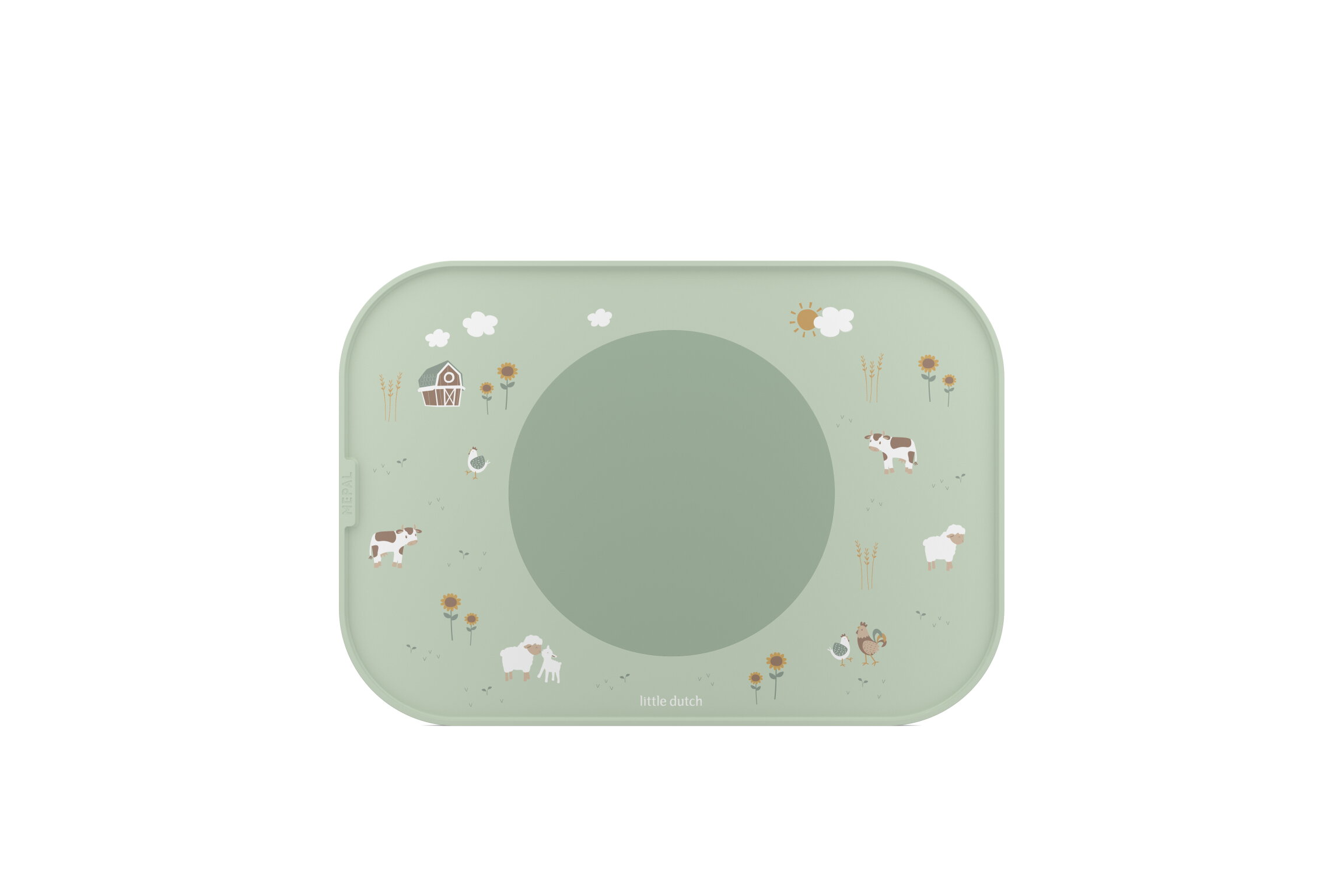 La tovaglietta mantiene il piatto in posizione grazie a un cerchio rimovibile e antiscivolo. Multifunzionale come tovaglietta o vassoio da portata. Resistente, senza BPA e facile da pulire.