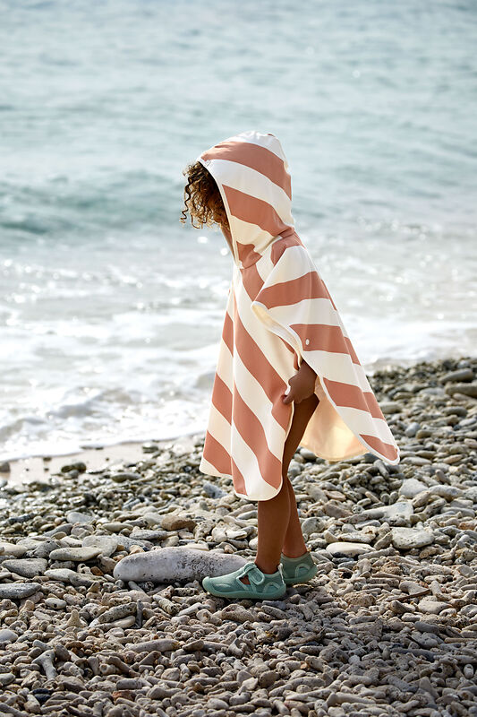 Il poncho asciugamano Stripes per bambini nelle delicate tonalità Clay e Sea Salt combina un design elegante con una funzionalità pratica. La texture morbida e la alta qualità del materiale offrono non solo comfort ma anche protezione. Dotato di una caratteristica materiale UPF50+, questo poncho asciugamano assicura che la delicata pelle dei bambini sia protetta al meglio dal sole. Ideale per la spiaggia o la piscina, permette ai piccoli di giocare e sguazzare senza preoccupazioni. Il grazioso motivo a righe rende questo poncho un accessorio alla moda e funzionale per giornate di sole.