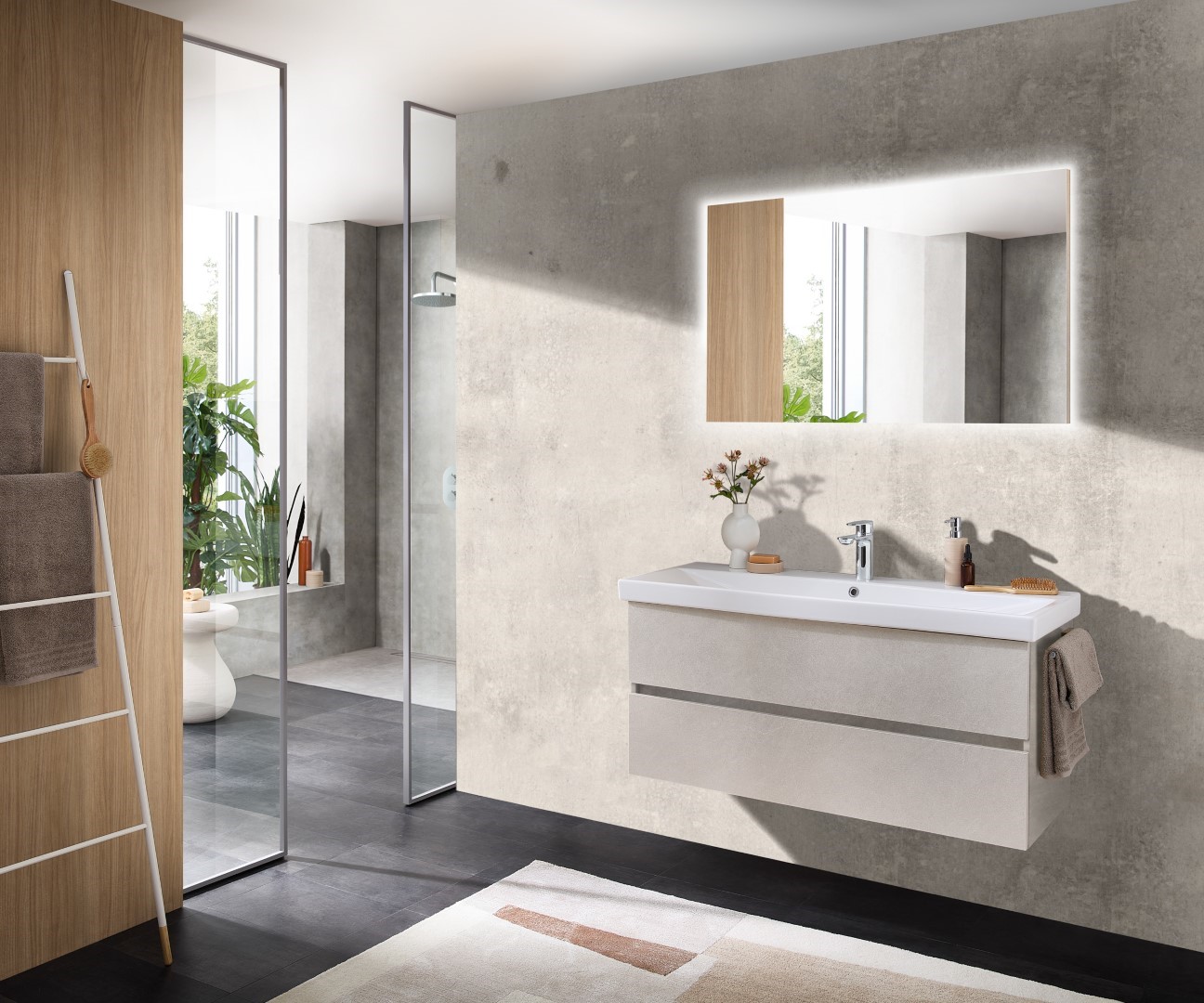 Set di mobili da bagno Solitaire 6090 in legno beige