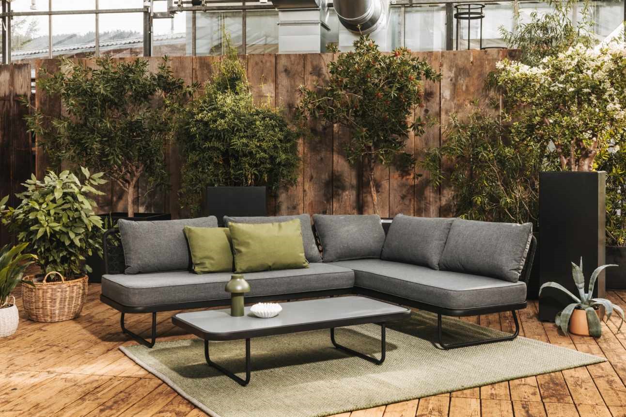 Set di mobili da giardino per esterni Ohio grigio nero Olefin acciaio