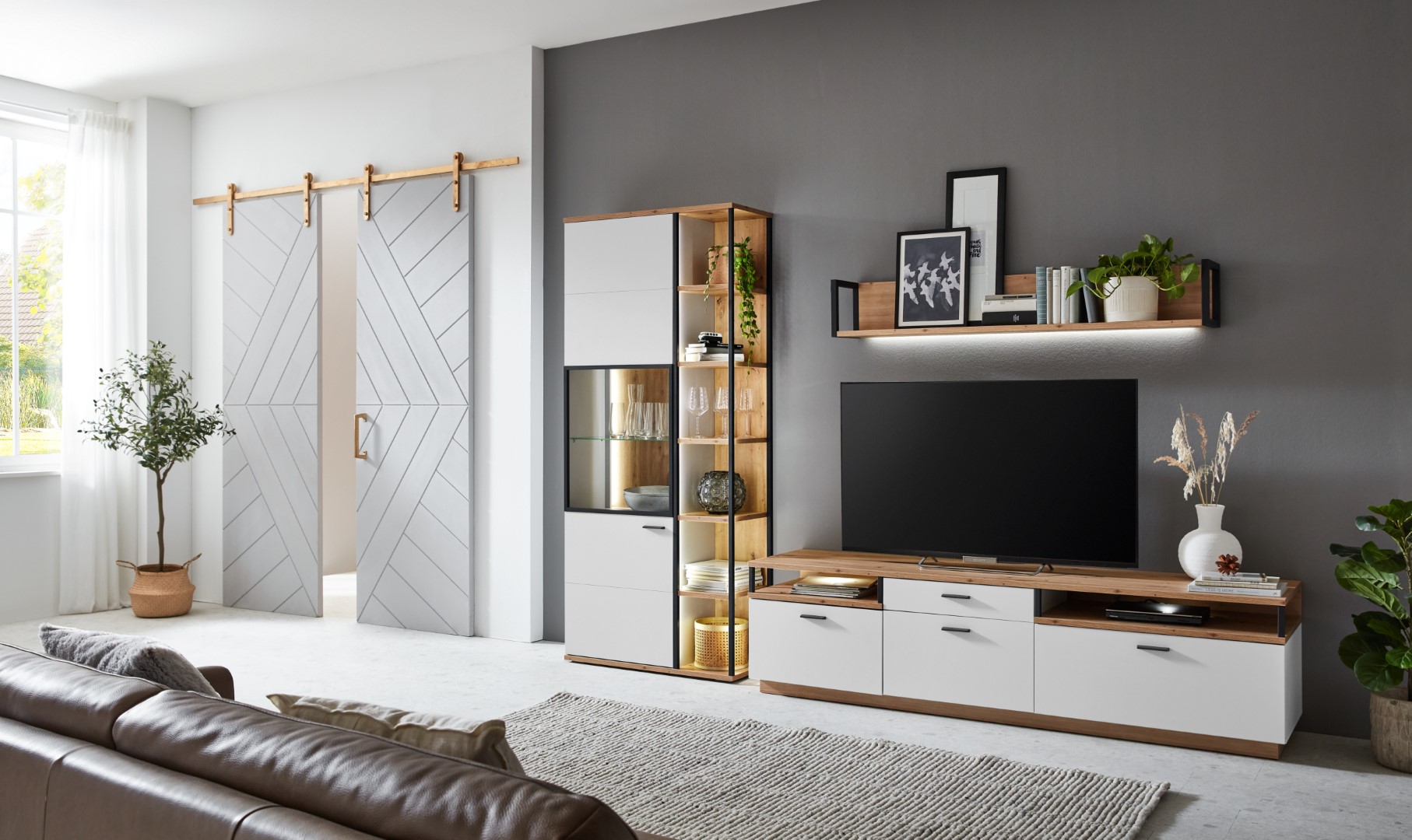 L'elegante rovere incontra il design moderno: la vetrina Basset con finitura opaca aggiunge una classe senza tempo alla vostra stanza. Questa versatile vetrina nei colori marrone e bianco combina materiali di alta qualità come il rovere Artisan, il vetro trasparente e il metallo per un look di grande effetto. Grazie alle sfumature di colore del rovere, del nero e del bianco, si abbina perfettamente a qualsiasi stile di arredamento. La robusta superficie in melamina garantisce una lunga durata, mentre il vetro trasparente mette in mostra con stile i vostri oggetti preferiti. Lasciatevi convincere dalla funzionalità e dall'aspetto elegante di questa vetrinetta e create un'attrazione unica nella vostra casa.