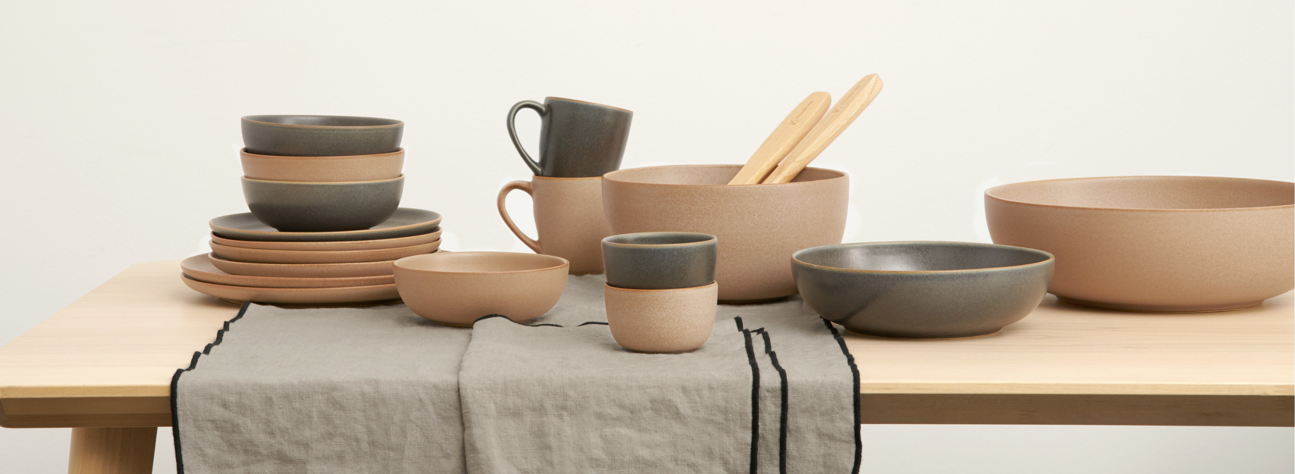 Le calde tonalità della terra si uniscono a sofisticate sfumature di grigio, creando abbinamenti unici che trasmettono calore e naturalezza.