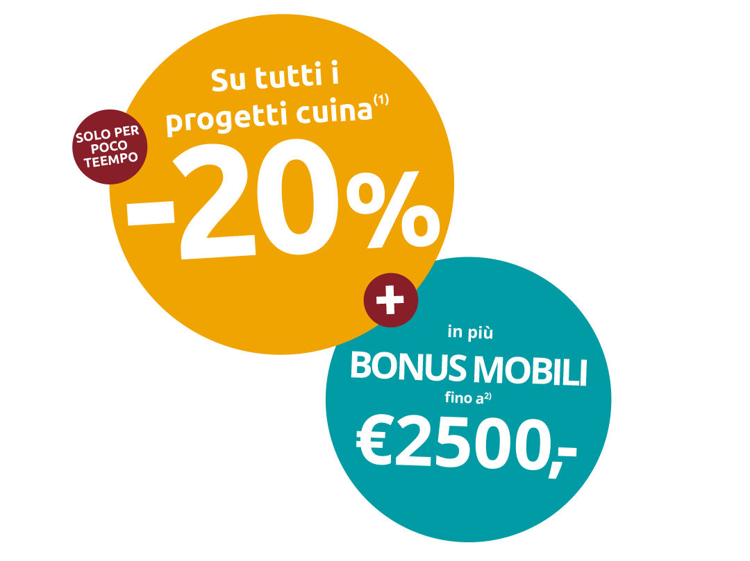 Ora –20% su tutte le cucine su misura e, con un bonus mobili aggiuntivo, puoi risparmiare fino a €2.500.