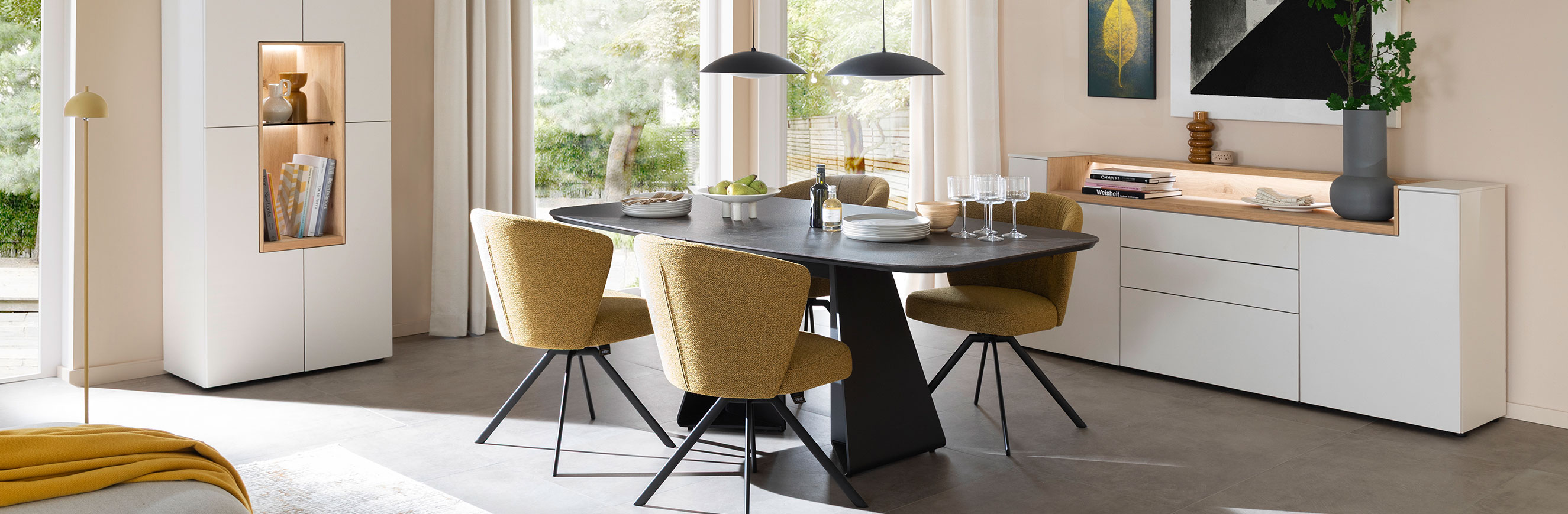 Ob mutige Kombinationen, besondere Einzelstücke oder harmonisch abgestimmte Details – erlaubt ist, was dir gefällt und sich gut anfühlt. Räume mit offenem Grundriss können über die Position der Möbel und ein geschicktes Farbkonzept sinnvoll strukturiert werden. So entsteht ein Wohnraum mit Persönlichkeit: individuell, lebendig und trotzdem stimmig.
